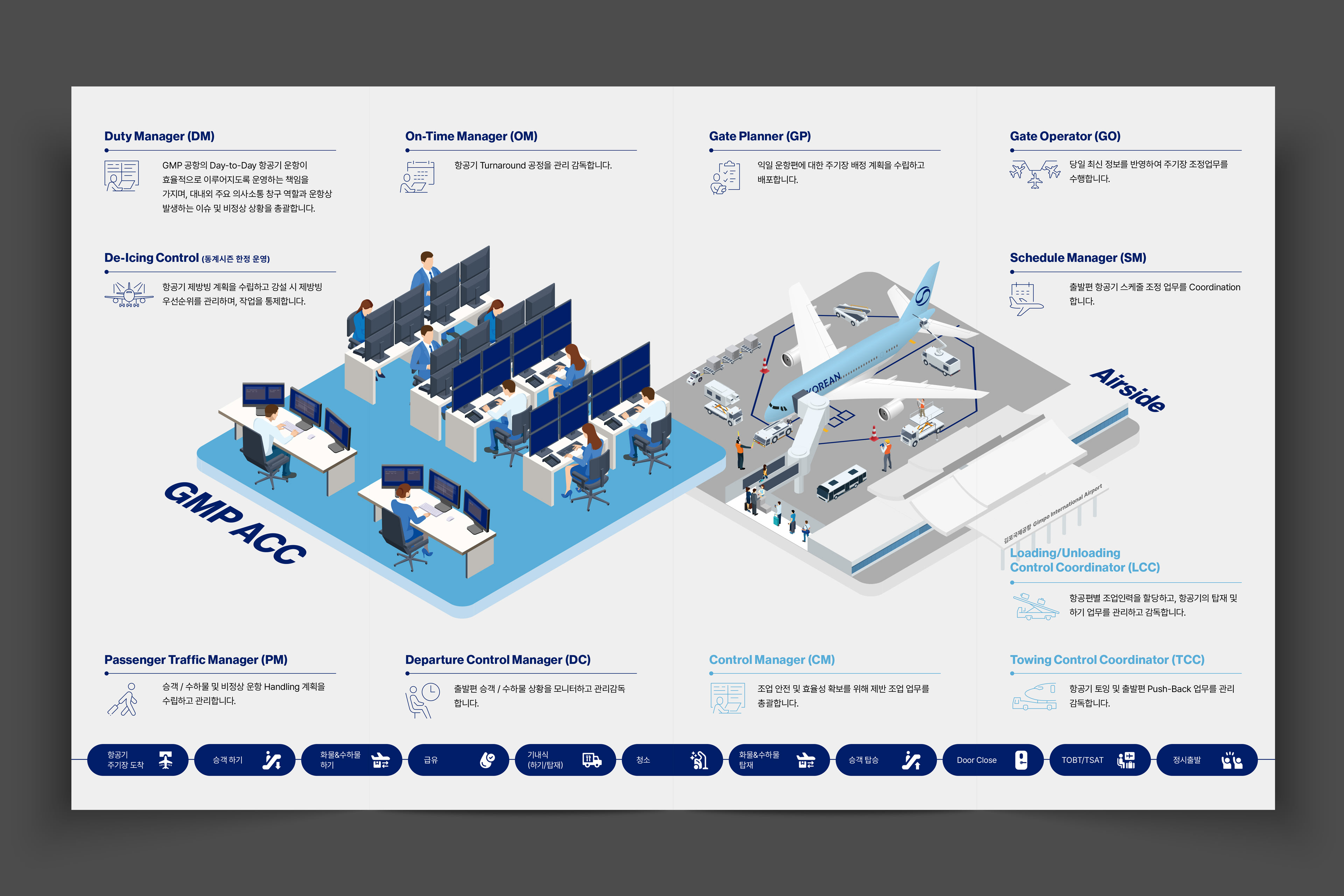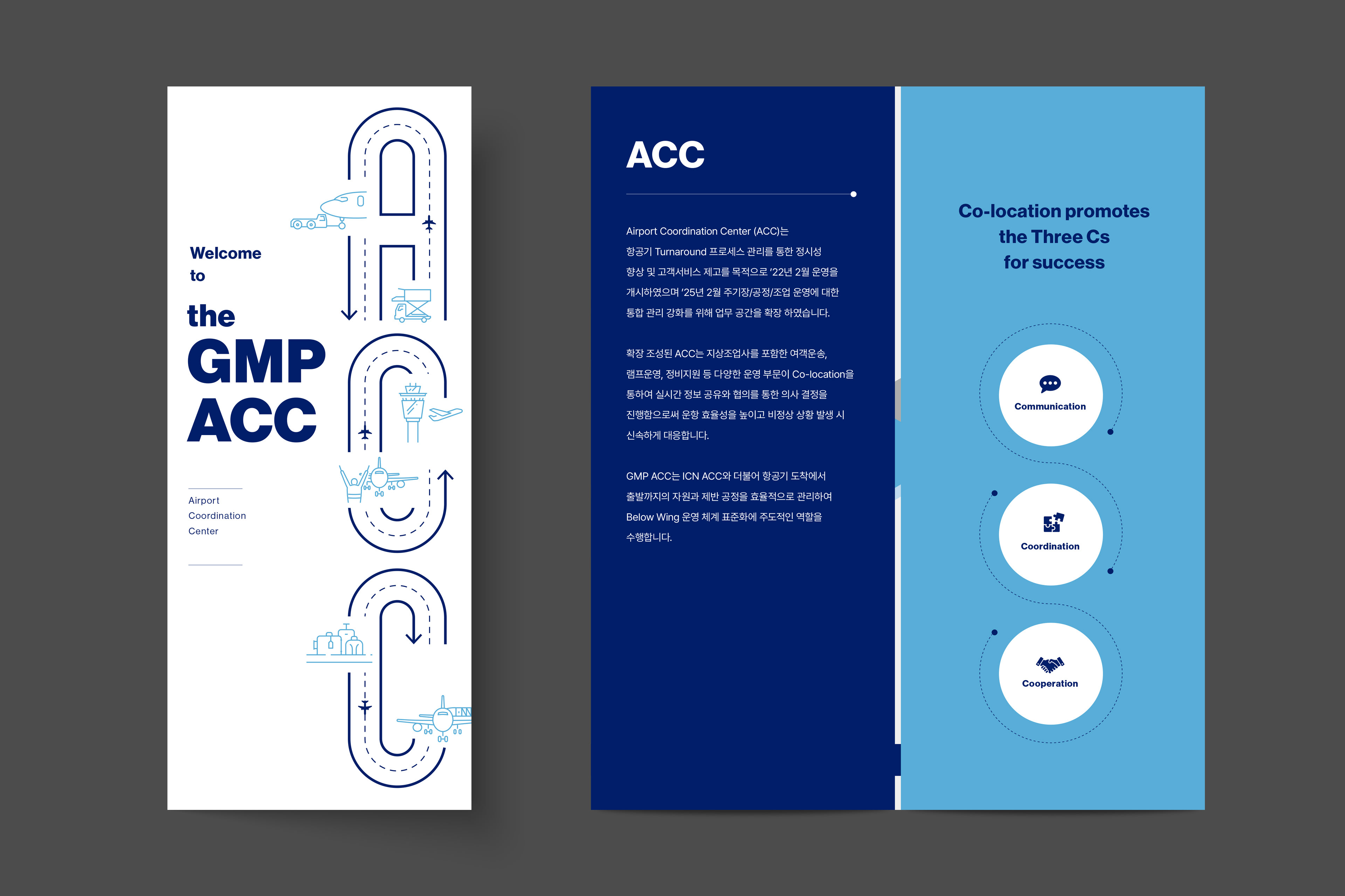 대한항공 김포공항 ACC 센터 홍보를 위한 리플렛으로 ACC의 주요 역활을 이해하기 쉽게 인포그래픽 형태로 디자인하였습니다.